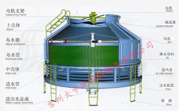 扬州冷却塔厂家生产的圆形逆流式玻璃钢冷却塔采用逆流式气热交换技术,填料采用优质的改性聚氯乙波片,以扩散淋水面积;通过旋转布水方式,实现布水均匀,增强冷却效果。我厂曾对本系列产品的外形设计作过局部改进,使其装配更方便、冷却效果好等特点。